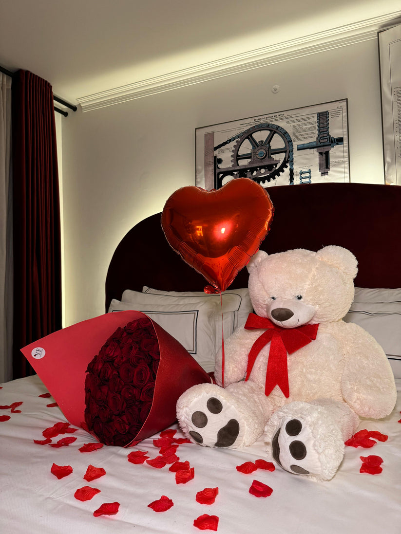 Le Pack Amour Intense est pensé pour les grandes déclarations et les émotions fortes. Il réunit un somptueux bouquet de roses rouges fraîches, symbole éternel de passion, et notre célèbre nounours Charle 1 mètre, doux et réconfortant.